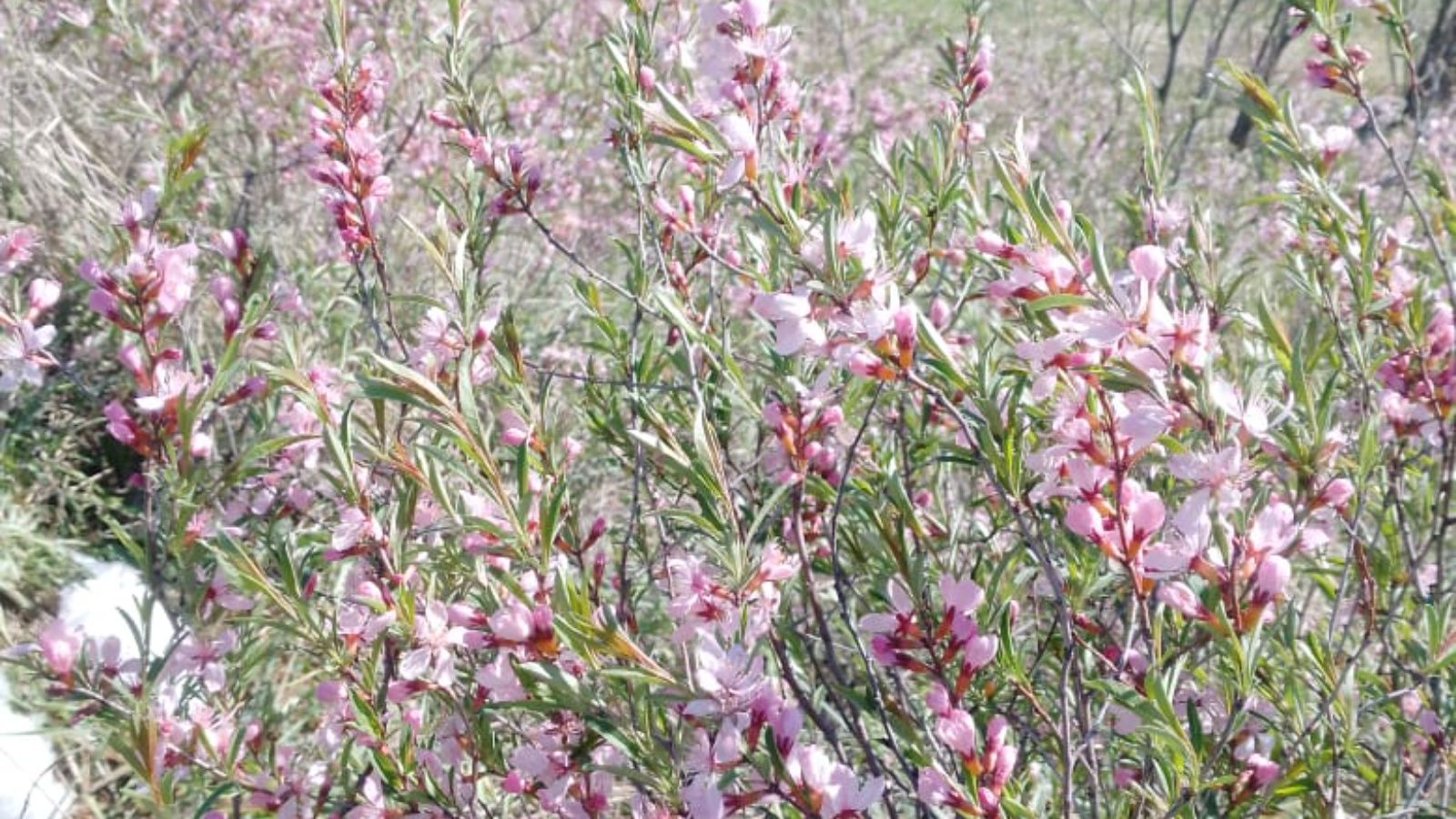 Расцветший миндаль низкий или, как его еще называют, бобовник, можно увидеть во всей красе на территории заказника «Чатыр-Тау» в Азнакаевском районе. Это первый кустарник, открывающий сезон цветения. Глядя на него издалека можно подумать, что это розовое облако.