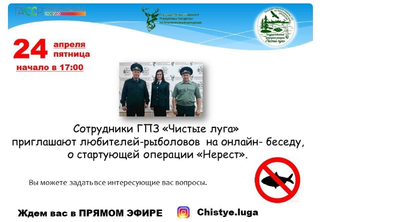 Бу хакта сүз бүген, 24 апрельдә, Instagram социаль челтәренең туры эфирында, # chistye.luga. аккаунтында барачак. Кичке сәгать биштә ( 17:00) сорауларга "Чиста болыннар" дәүләт табигать заказнигы башлыгы Александр Чебурахтин җавап бирәчәк.