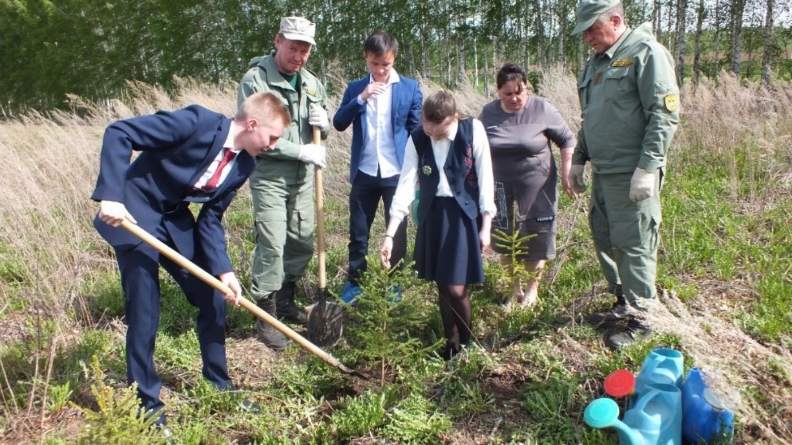 Чара барышында укучылар үзләренең табигать турындагы белемнәрен искә төшерделәр, яшь үсентеләрне утырту һәм карауның мөһимлеге турында сөйләделәр. Уку йорты территориясендә 50 чыршы үсентесе утыртылды.